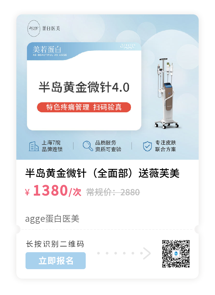 agge蛋白是一家以皮肤美容为主要服务的上海七院轻奢医美连锁品牌,严格甄选国内外众多高新科研成果融入美学护肤流程,从“白、亮、塑、提、美”五个维度出发。