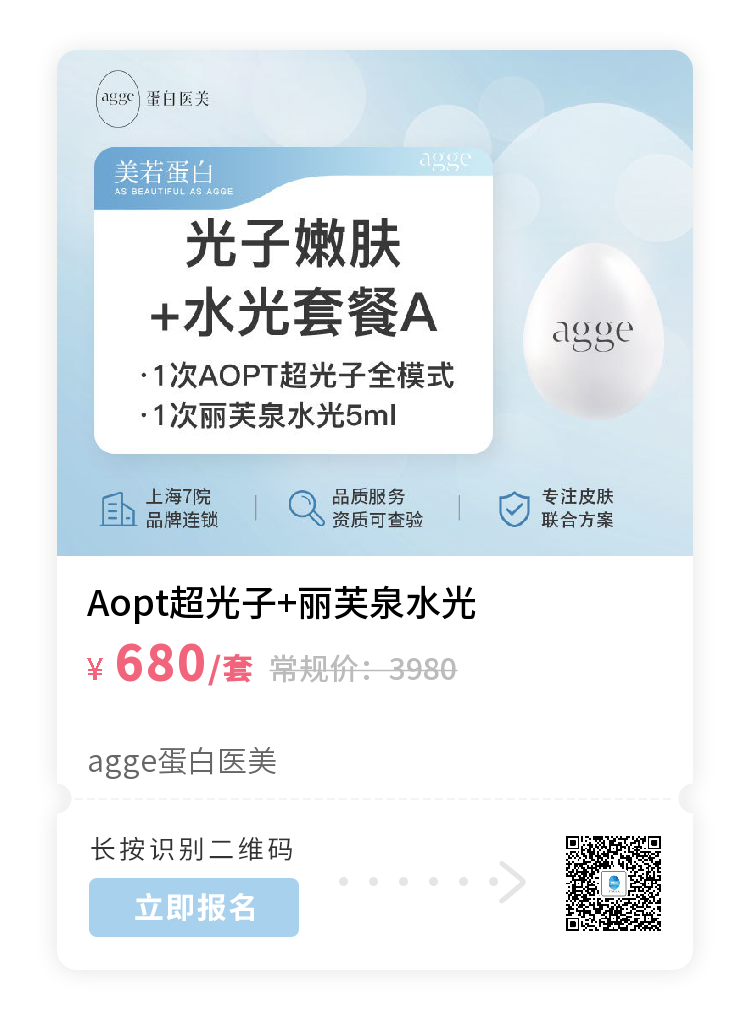 agge蛋白是一家以皮肤美容为主要服务的上海七院轻奢医美连锁品牌,严格甄选国内外众多高新科研成果融入美学护肤流程,从“白、亮、塑、提、美”五个维度出发。