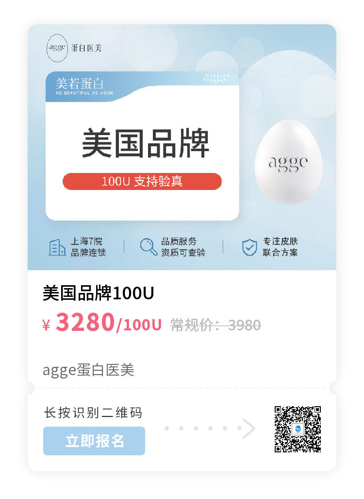 agge蛋白是一家以皮肤美容为主要服务的上海七院轻奢医美连锁品牌,严格甄选国内外众多高新科研成果融入美学护肤流程,从“白、亮、塑、提、美”五个维度出发。