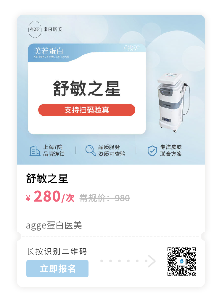 agge蛋白是一家以皮肤美容为主要服务的上海七院轻奢医美连锁品牌,严格甄选国内外众多高新科研成果融入美学护肤流程,从“白、亮、塑、提、美”五个维度出发。