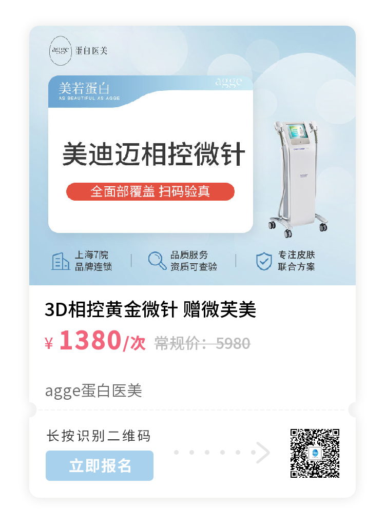 agge蛋白是一家以皮肤美容为主要服务的上海七院轻奢医美连锁品牌,严格甄选国内外众多高新科研成果融入美学护肤流程,从“白、亮、塑、提、美”五个维度出发。
