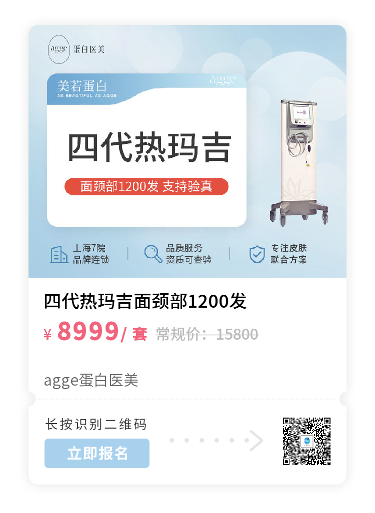 agge蛋白是一家以皮肤美容为主要服务的上海七院轻奢医美连锁品牌,严格甄选国内外众多高新科研成果融入美学护肤流程,从“白、亮、塑、提、美”五个维度出发。