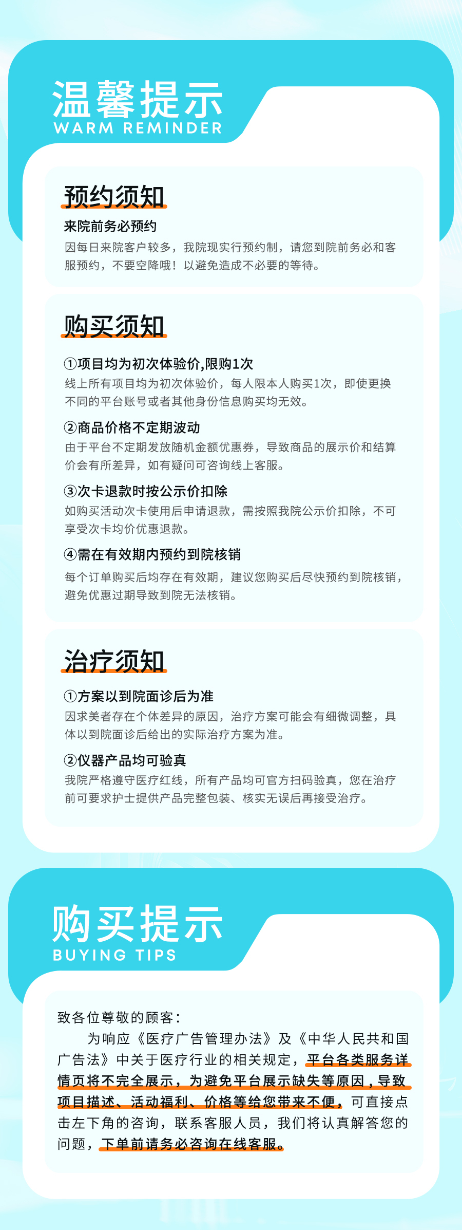 请选择具备《医疗机构执业许可证》的医疗机构及符合《医疗美容服务管理办法》规定资格的执业人员;请到店使用前要求商家提供完整包装的器械等,核实无误后再接受服务。