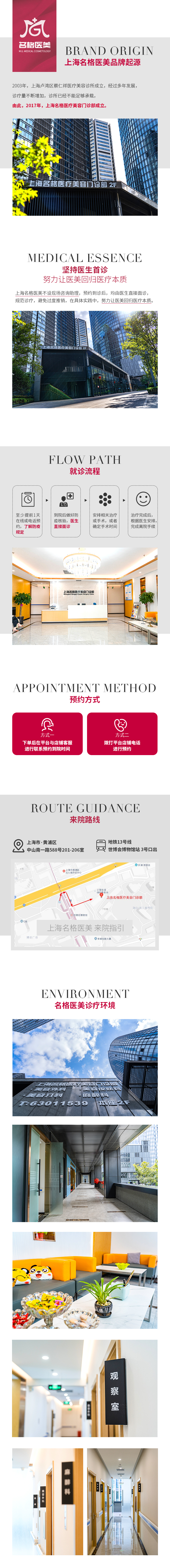 上海名格医疗美容门诊部,位于黄浦区,地铁13号线世博会博物馆站,设有美容外科,美容皮肤科,美容牙科,麻醉科等科室。环境优雅,医生直接面诊。