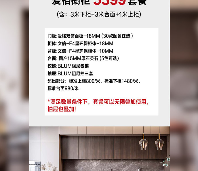 饰韵橱柜全屋定制 一字型厨房定制北欧风格爱格板兔宝宝柜体