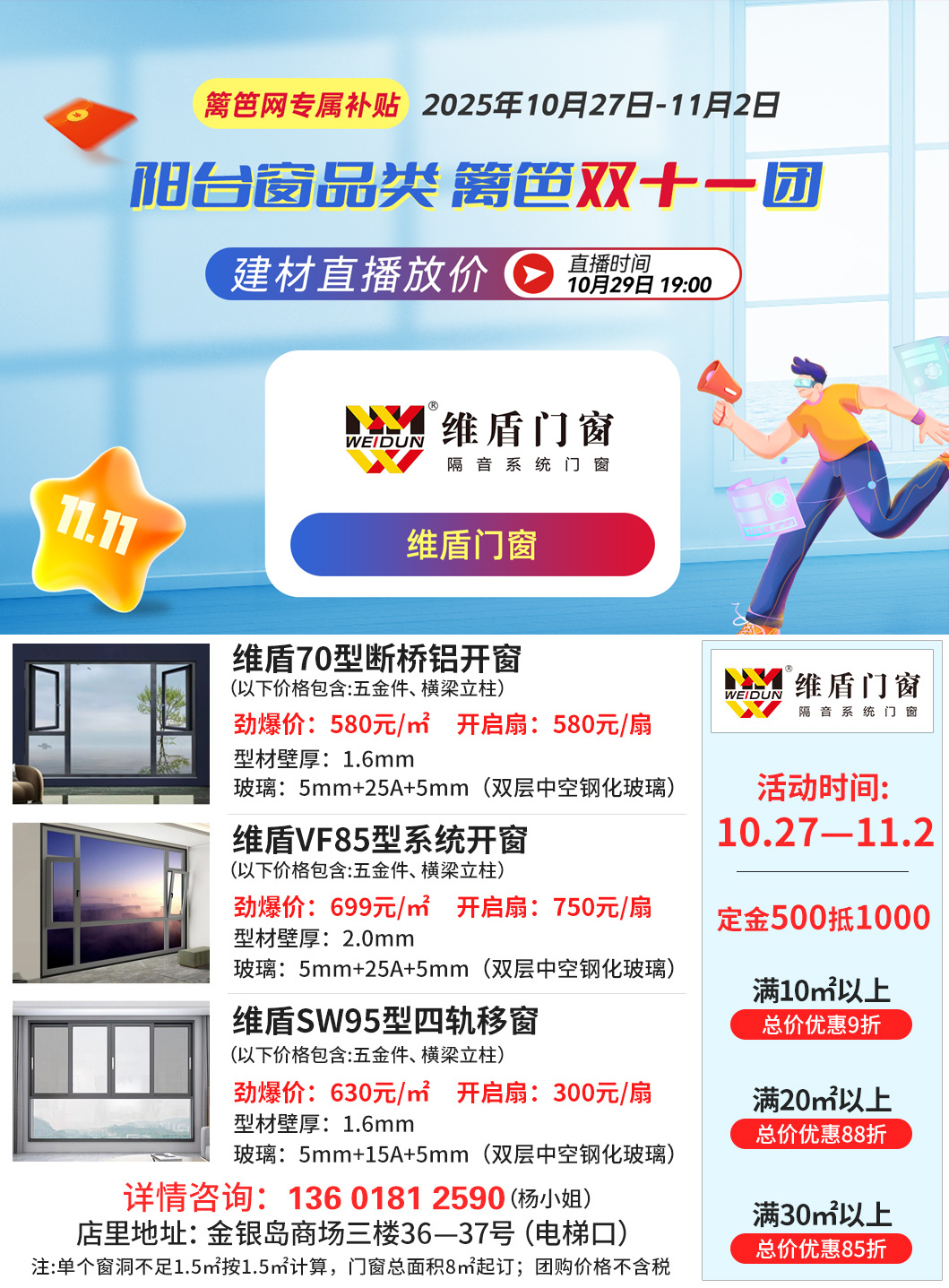 (篱笆双11阳台窗品类团)维盾门窗专场