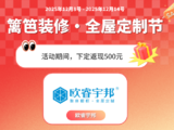 欧睿宇邦全屋定制节-下定参加篱笆返现活动。橱柜低至4100元/3米 ,激光封边+终身质保服务