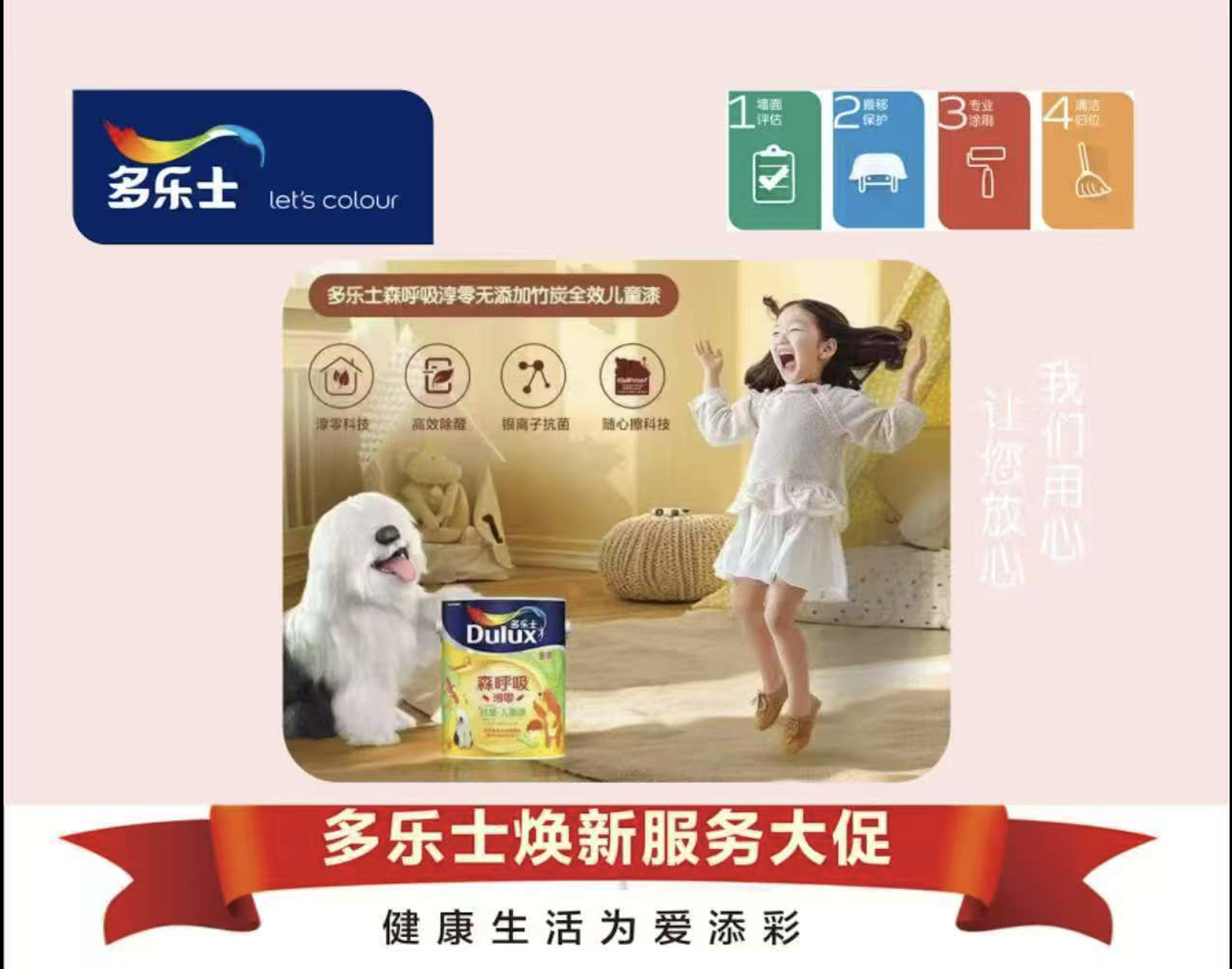 多乐士新春焕新季,墙面焕新特价满5000减500元,指定产品买二送一