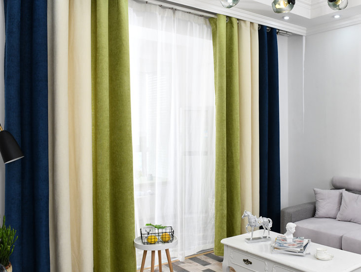2020全新雪尼尔面料纯色拼接款窗帘
