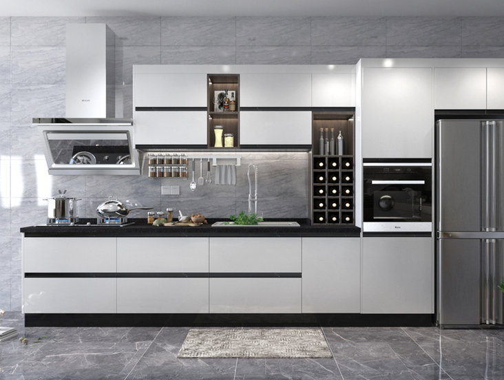 饰韵橱柜全屋定制爱格板一字型橱柜定制整体厨房定制现代简约橱柜