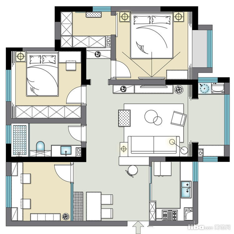 原木风辅以淡雅的绿色,缓解审美疲劳的同时让家温馨