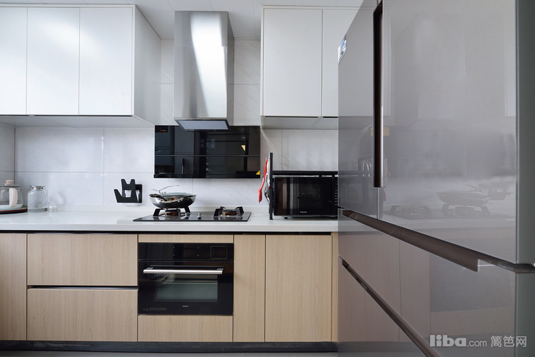 原木色橱柜+大理石墙砖,搭配起来也是非常的和谐,正所谓“厨房设计得好,一日三餐不用恼”。在这样的空间里,连做饭也变成了一种享受生活。