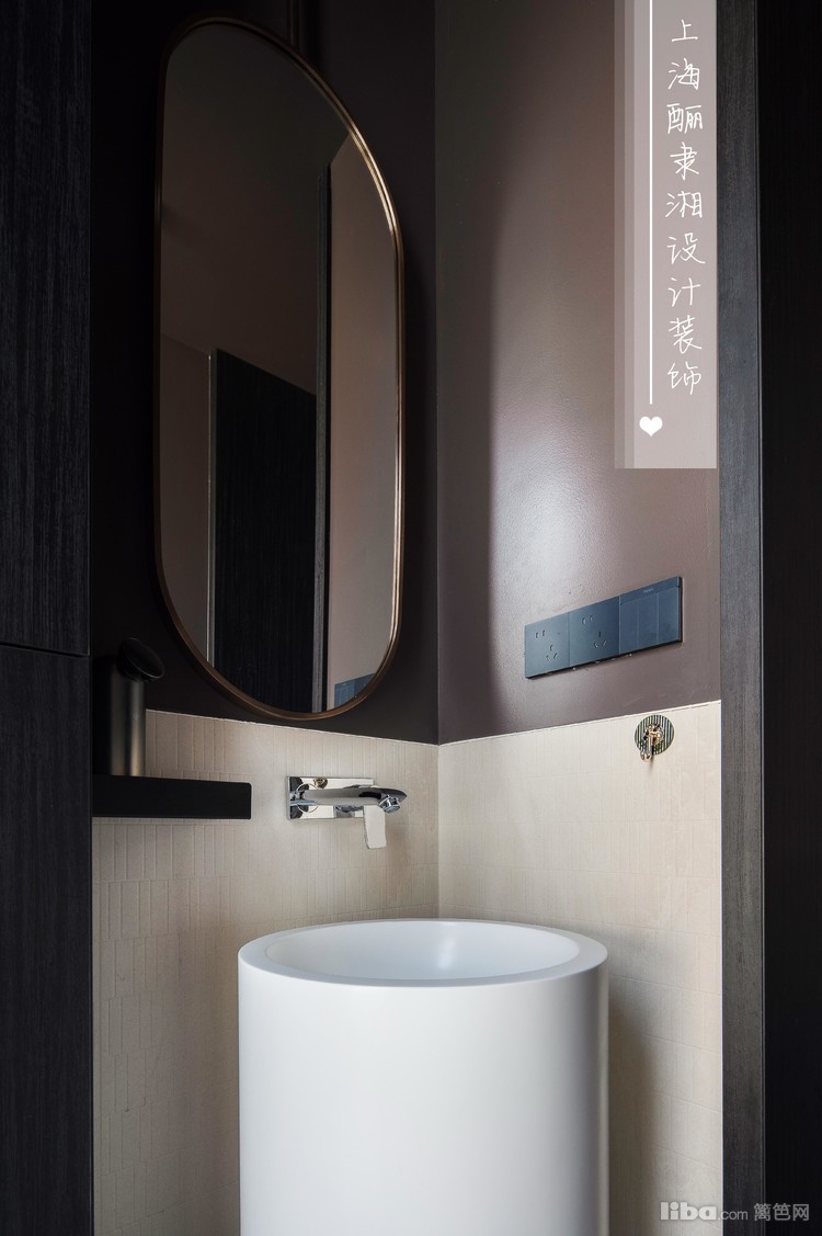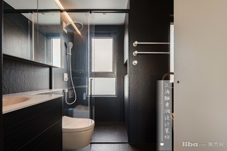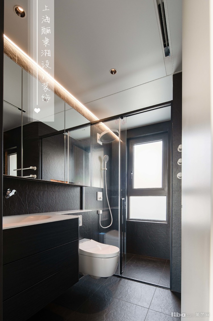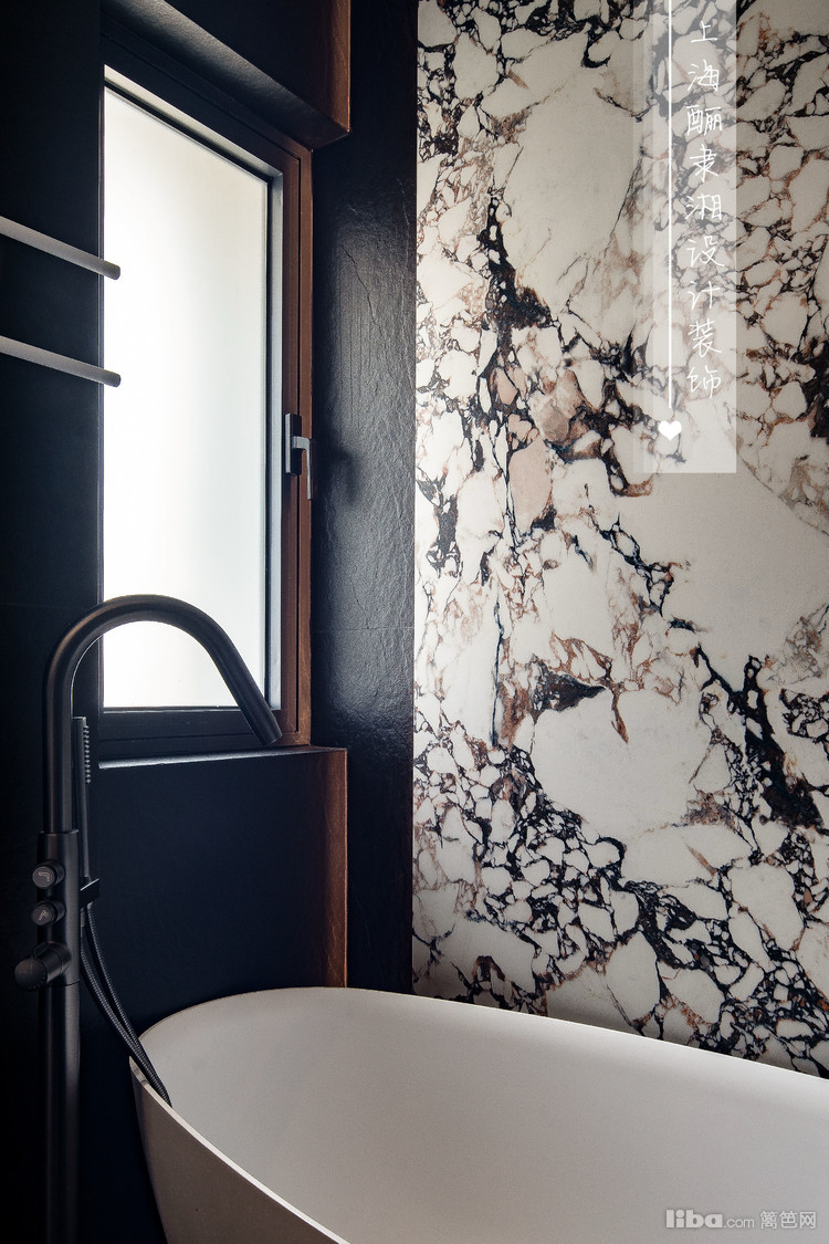 主卫:黑色哑光砖通铺墙地面,搭配独立浴缸大理石纹岩板背景,轻奢感扑面而来!
