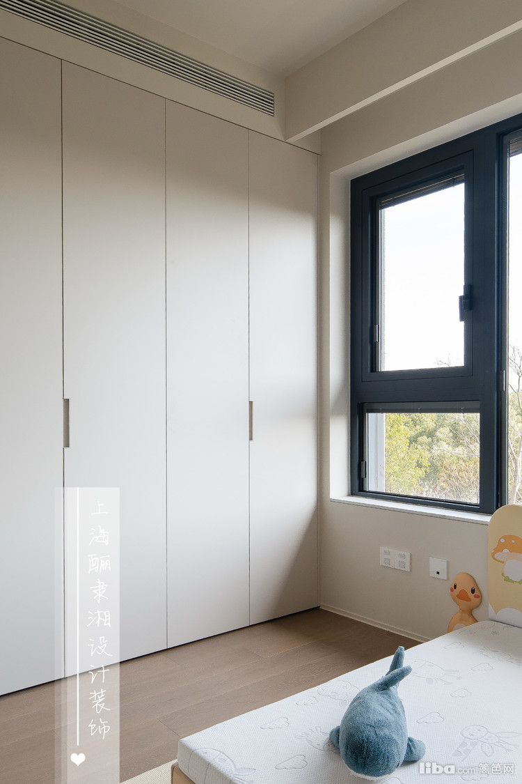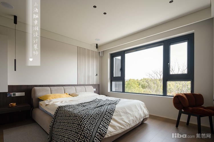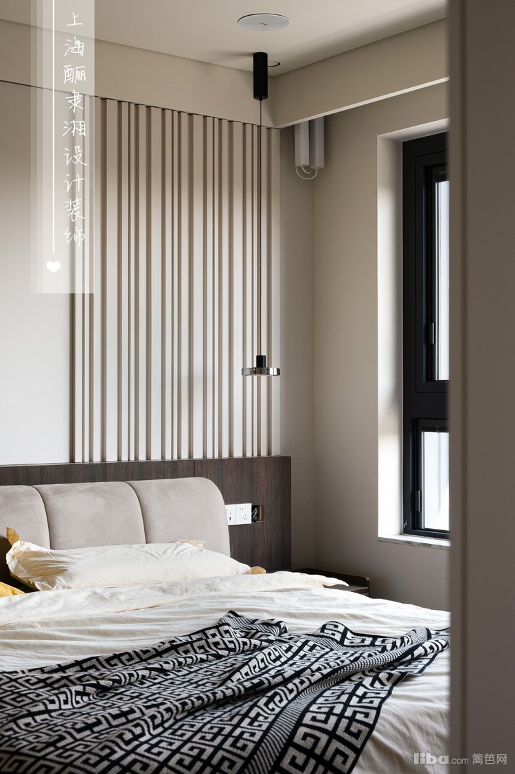 奶油色木饰面+隐形门,营造慵懒氛围;无主灯设计搭配床头小吊灯,光影温柔不刺眼。