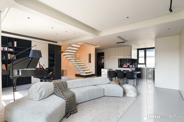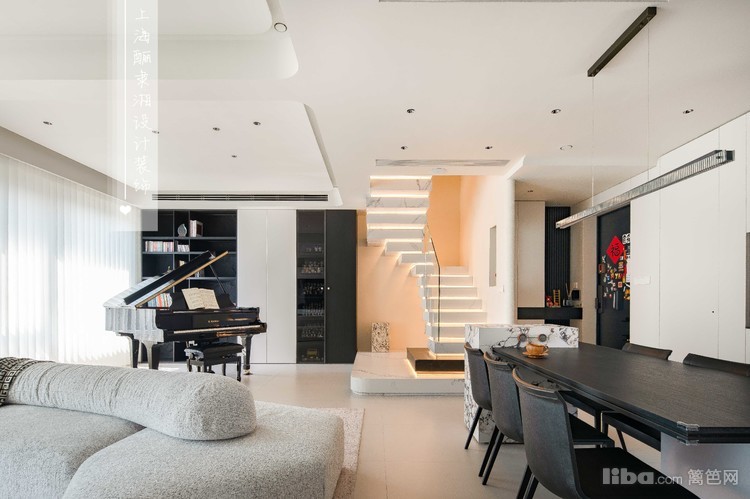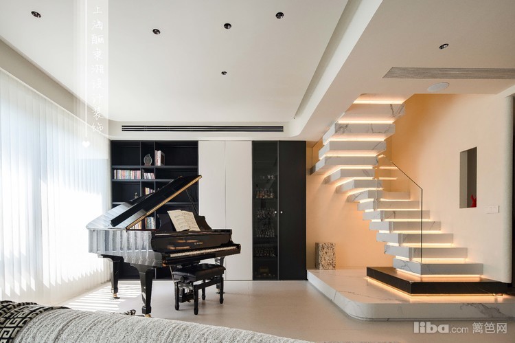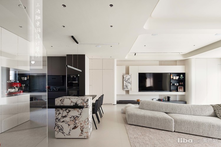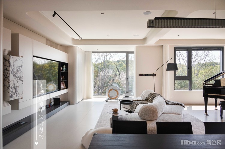 无主灯设计:磁吸轨道灯+防眩射灯+灯带组合照明,见光不见灯,氛围感拿捏到位。