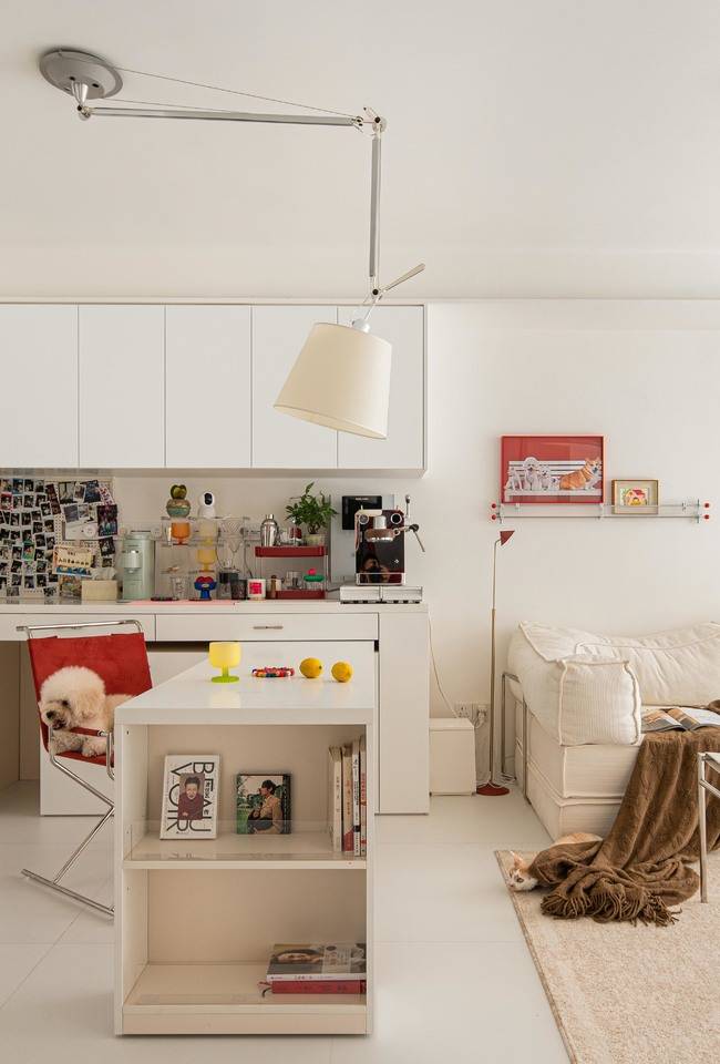 奶油色为底,一抹红色点睛!她把