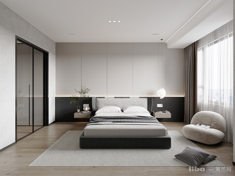 以现代简约为设计核心,通过简洁的线条、柔和的色调与舒适的家具搭配,营造出静谧放松的卧室氛围,让空间兼具实用性与美学感,为居者打造出一方休憩的温馨天地。