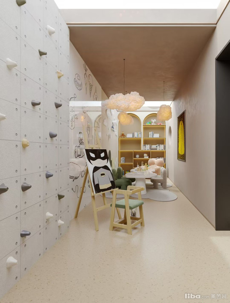 打破传统书房定式,融入攀岩墙增添活力,搭配绘画、阅读等区域,以柔和色调与童趣元素,打造集学习、创作、趣味互动于一体的多元空间,激发创意与探索欲。