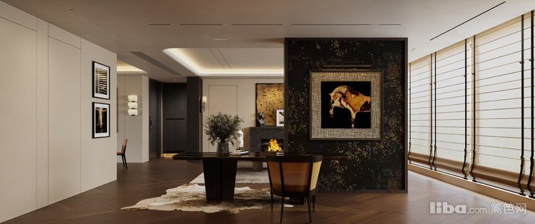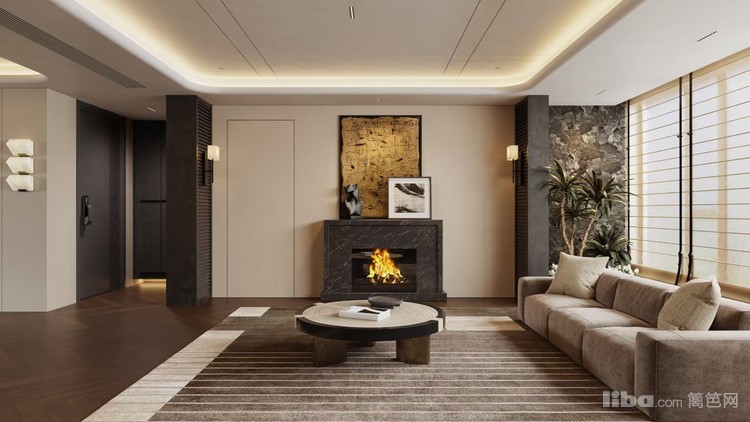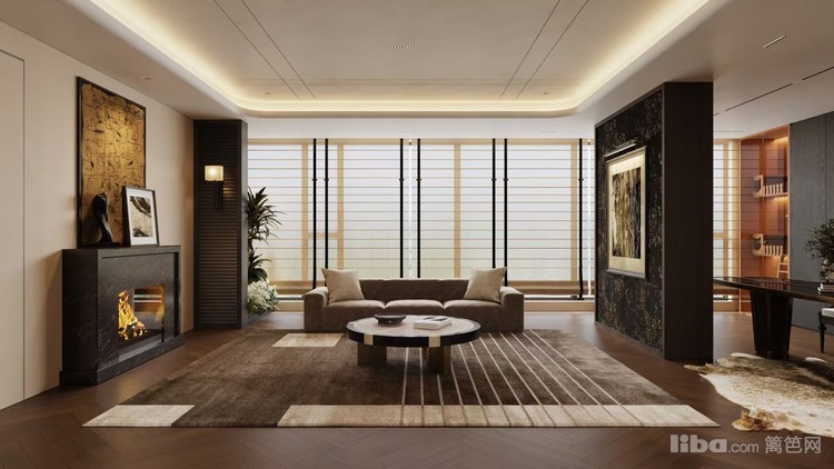 以现代轻奢为基调,利用暖光、木质元素与精致家具,营造出舒适且富有格调的氛围。壁炉与艺术挂画增添空间质感,大窗户引入自然光线,打造出一个兼具温馨与高级感的社交休闲空间。