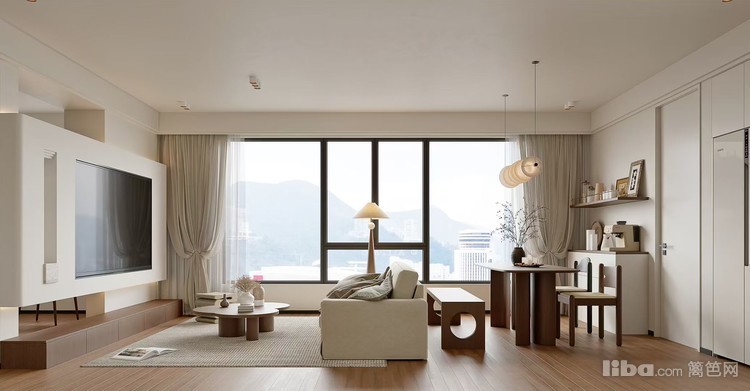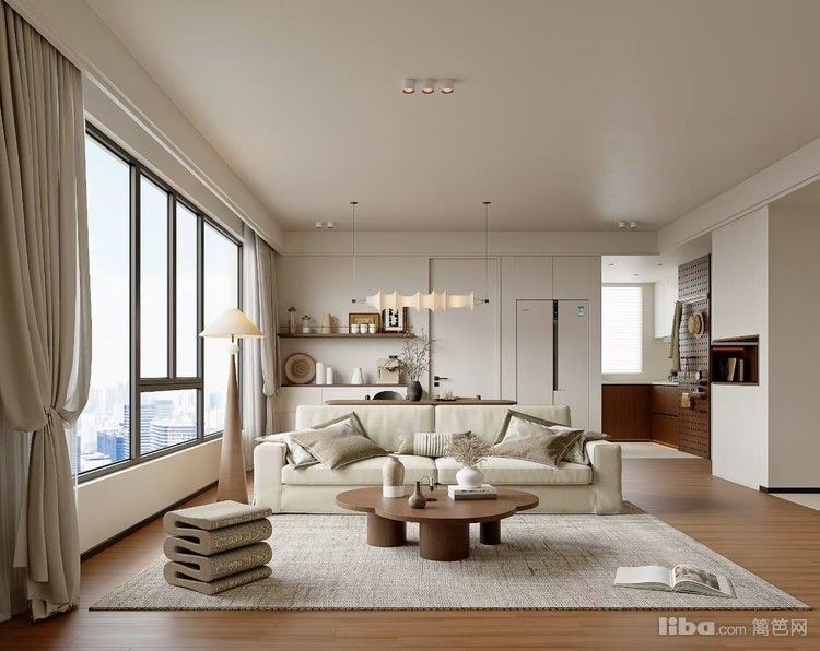采用现代简约风格,以浅色调为主,搭配木质元素,营造出温馨自然的氛围。大窗户引入充足自然光线,简洁的家具线条与柔和灯光结合,打造出通透且舒适的休闲空间,满足日常放松与社交需求。