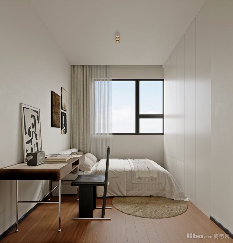 遵循现代简约理念,利用简洁的线条、中性色调构建空间。合理规划布局,兼具休憩与学习功能,大窗户引入自然光线,搭配柔和灯光,营造出宁静舒适的睡眠与学习环境。