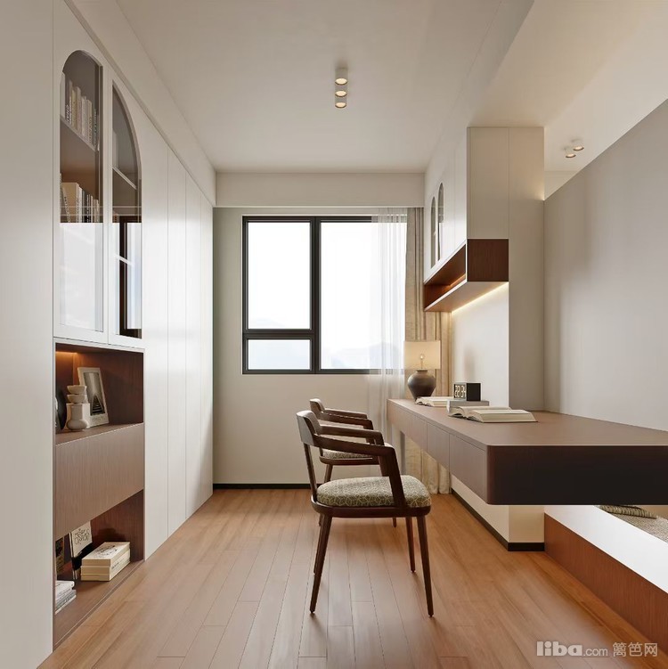 现代简约风格与实用功能融合,充足的收纳空间与简洁的书桌设计,满足阅读办公需求。灯光设计柔和,营造出专注且舒适的学习工作氛围,让业主能在此处高效开展活动。