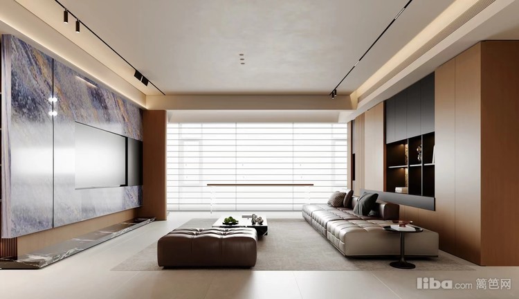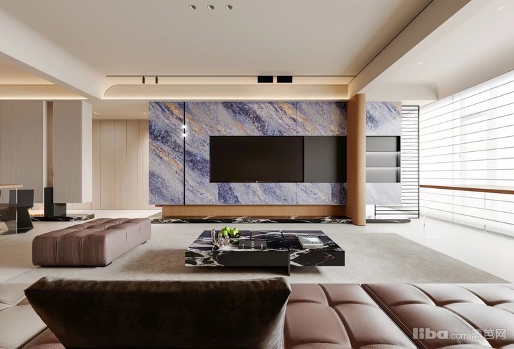 选用具有独特纹理的大理石电视背景墙,成为空间的视觉焦点,既展现出自然材质的独特魅力,又彰显高雅品味。