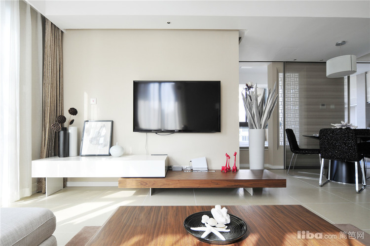 客厅简洁干练不拖泥带水,繁杂的工作后需要一个可以让人安静的空间。一缕薄纱,室外倾泻而入的阳光无限惬意。室内家具简单就好。