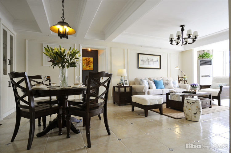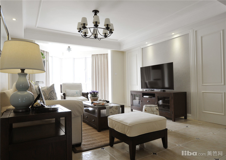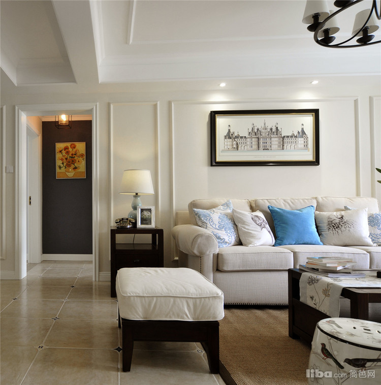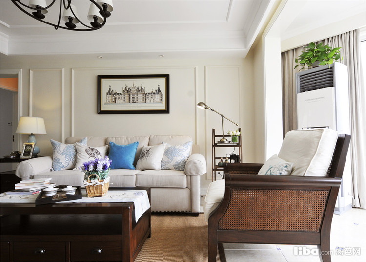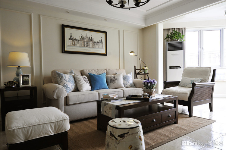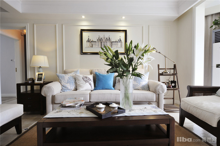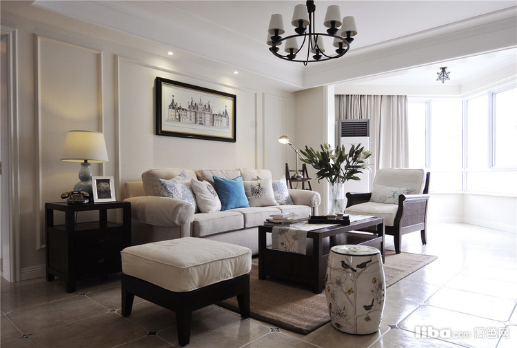 美景刚入,沁香已来。一束百合,醉了芳香无数。一如这明净透亮的客厅,因这暖白沙发和藤编单人位而显得格外清爽,脚凳与靠垫的中式花鸟元素使本就明媚的空间,多了些许清婉可人。