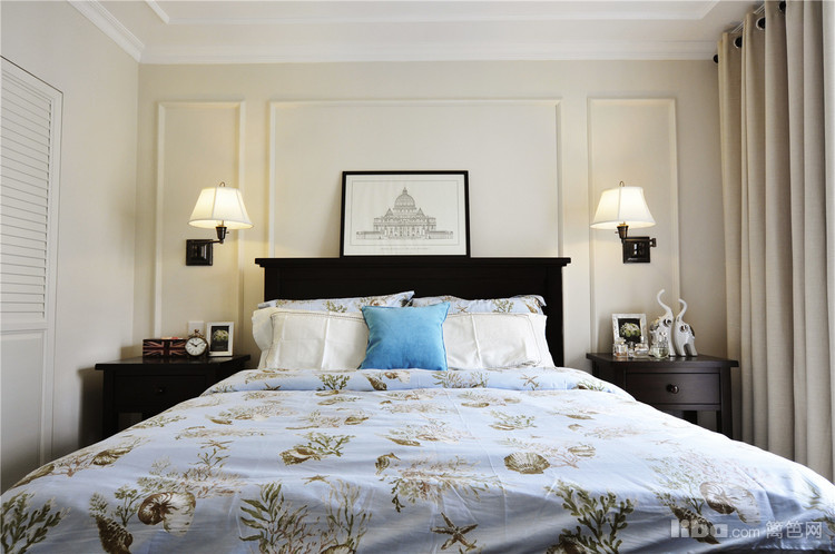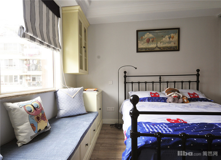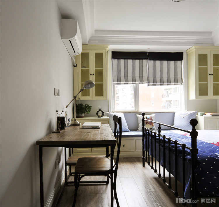 主卧依旧延续了客餐厅鹅黄与深棕的配搭,立体有型的线条无处不在,饶有情趣的壁挂式台灯静默成画,缠缠绵绵。儿童房的铁艺与飘窗,走了一回妥妥的美式工业风,简单却不平凡。