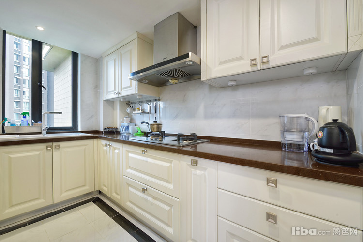 黑白餐厨,秀外慧中,方形雕花的镂空把手给原本质朴的空间增加了些许灵动趣味。