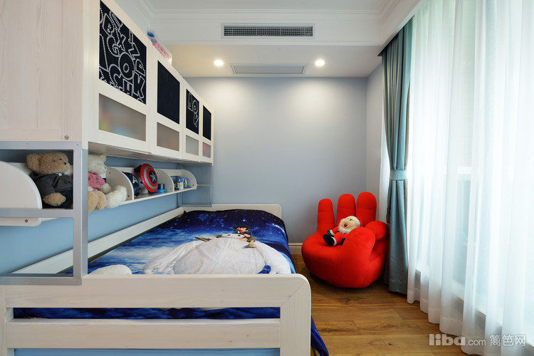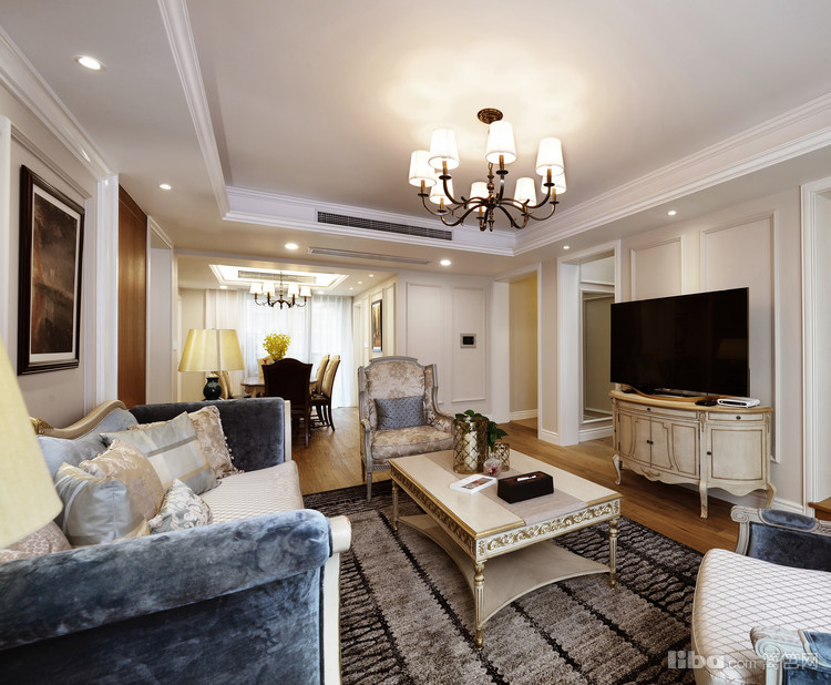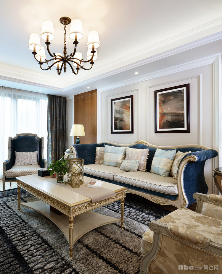 当纤巧柔美的宫廷法式家具,邂逅简洁硬朗的美式线条,无尽的爱意从浅驼色与蓝色围绕的空