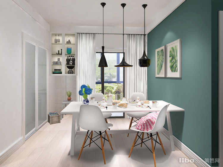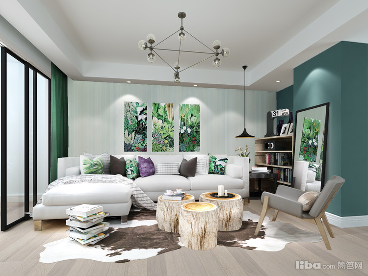 在以森林绿为主旋律的背景下,个性有腔调的树根茶几,充满设计感的吊式台灯,线条优美的单人位,就连看似最随性的穿衣镜都遥相呼应着落地窗,整个空间都给人优雅内敛,清新明快的舒畅感。