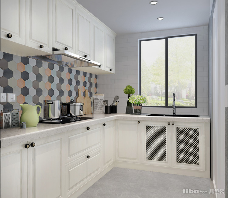本白的厨房很多,但是这样拼花瓷砖的厨房很少,水泥地砖墙裸露出来,并不显得突兀,反而透着一种高贵的朴素,与拼接花砖一张一弛,另类演绎着北欧独有的低奢范儿。
