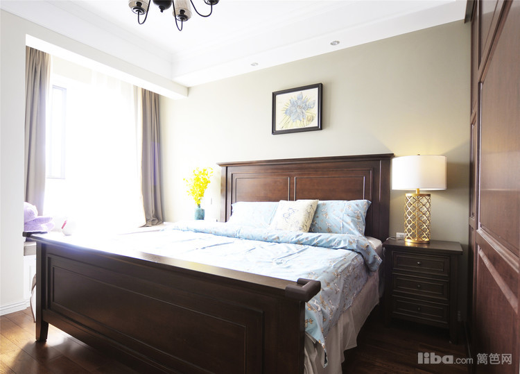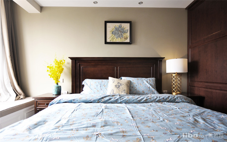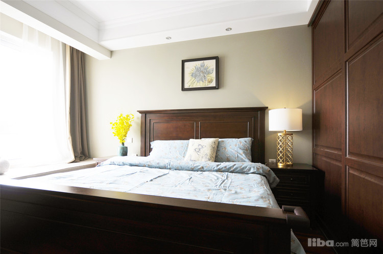 主卧家具与客餐厅甚至橱柜的颜色都保持了完全的一致性,精炼含蓄,简洁干净。