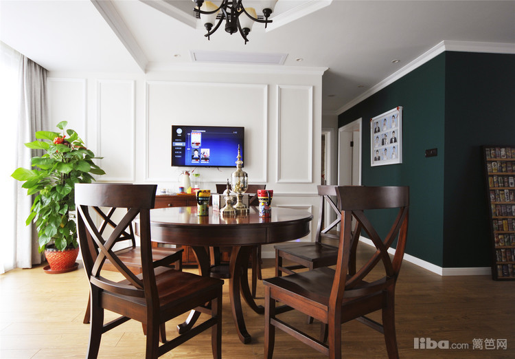 「餐厅」因这一色深青而显得优雅平静,与亮白形成鲜明对比,犹如一半海水一半天堂,传统的木质家具则为空间增添了一丝温暖感受。