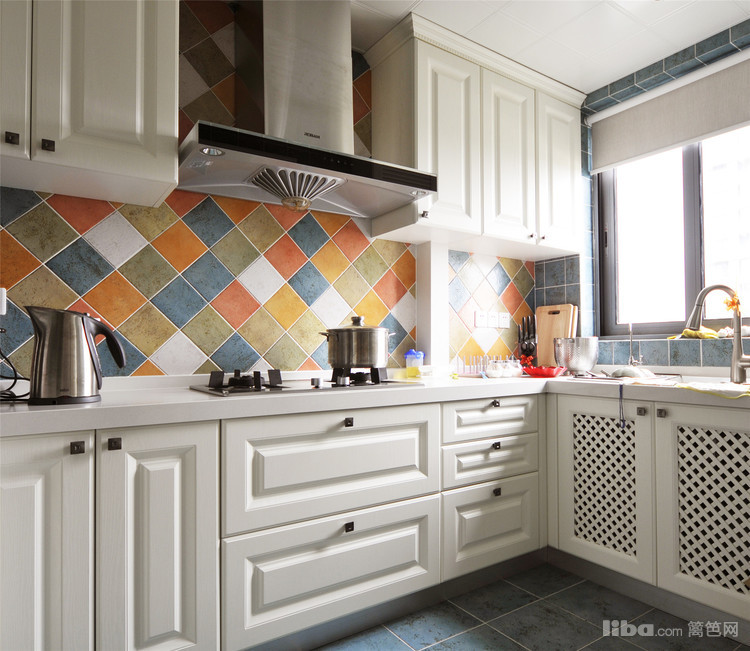 「厨房」因花砖而显得欢快明媚,在这蓝天白云青草黄花洒满橙阳的空间里,做一个安静的美厨娘。