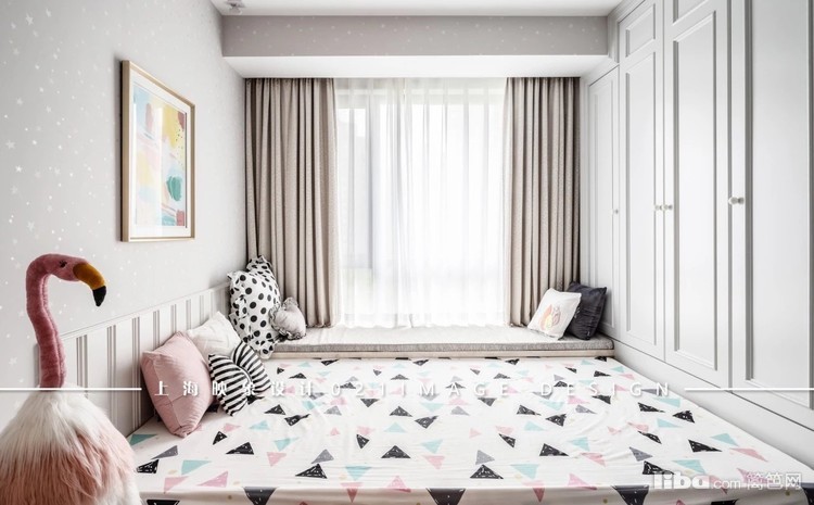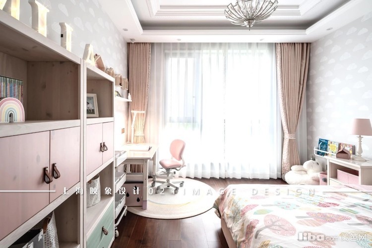 女儿房用灰色云朵墙纸配以粉色成品家具的搭配,梦幻的童话感填满了小女孩的公主心。