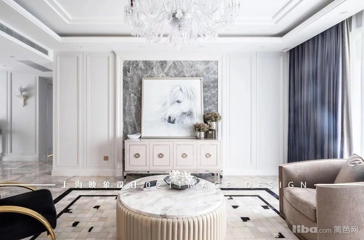 设计师用白色柜体搭建了一个兼具强大收纳空间的沙发背景墙,