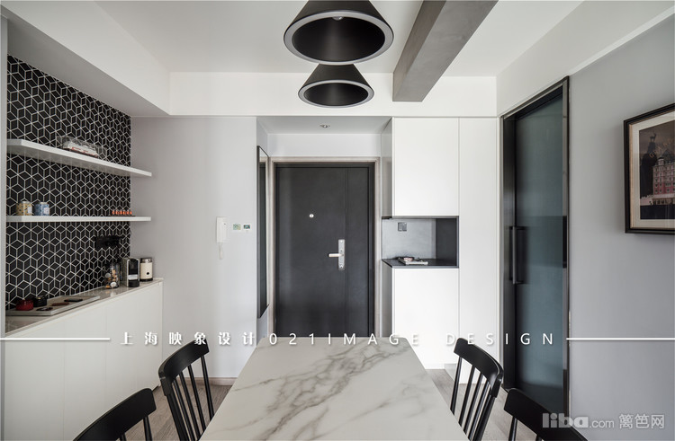 利用曲折的过道空间,改变卫生间的位置,增加出了一个宽敞的餐厅空间,同时因为与客厅之间无遮挡,充足的阳光不仅照亮了客厅,同时也让餐厅空间由暗转明。
