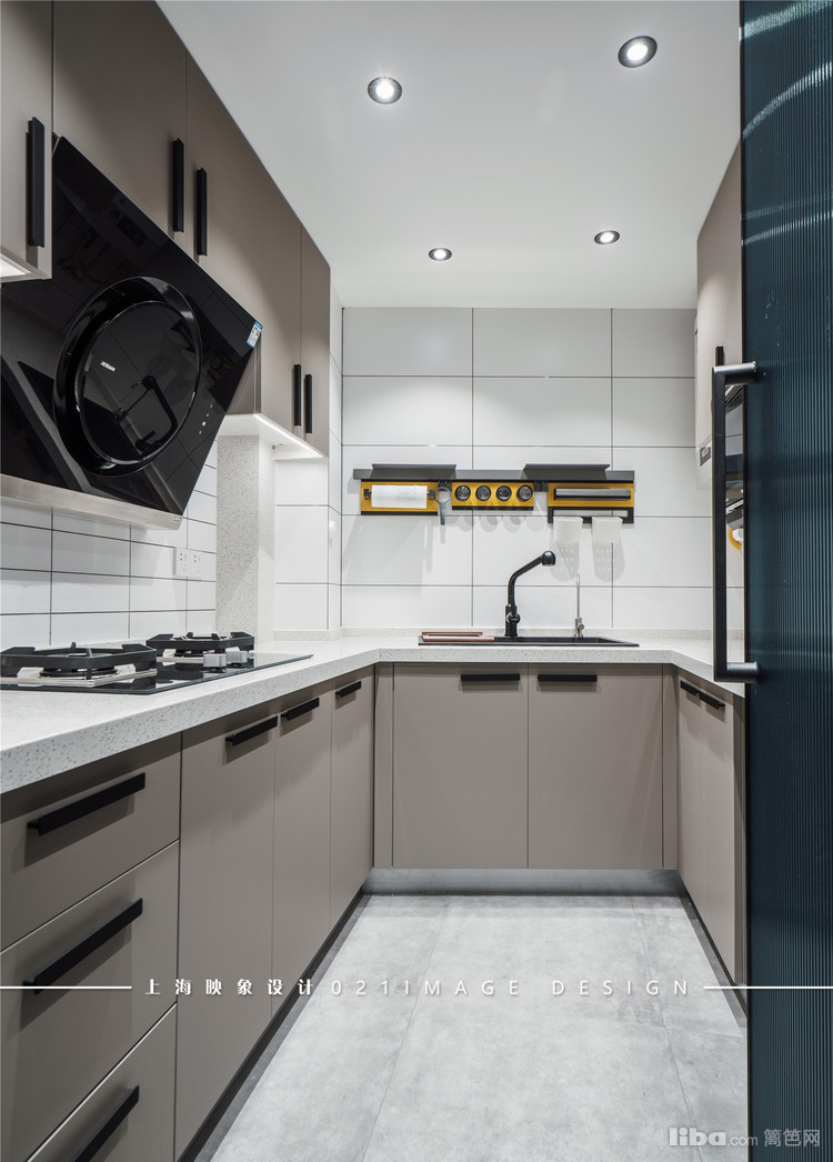 U字型厨房结构紧凑、功能齐全、收纳强大,黑白灰的经典配色让厨房更加清爽简洁