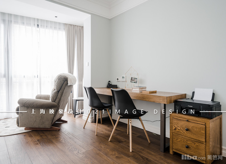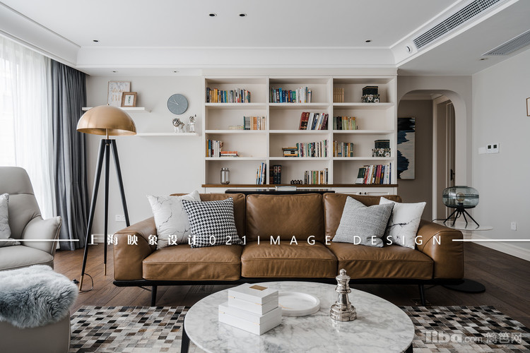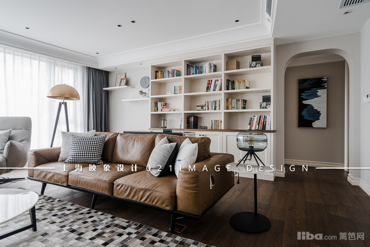 客厅拥有大面积的采光,并将白墙与木地板为基底,再结合沙发后方的展示墙及休闲区,让公领域呈现随兴氛围。