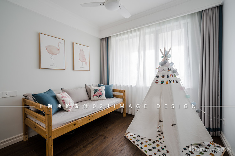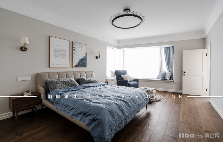 主卧房以淡灰色为主调,为空间染上一抹沉静,而窗边设置的卧榻及床头的壁灯,则为简约的布置添点小巧思。