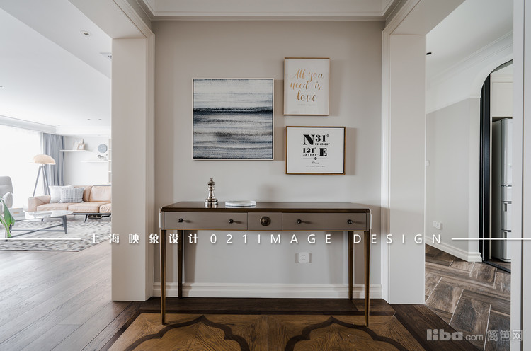 宽阔的玄关将入门动线一分为二,其简约无华的摆设,也揭示整体居家美式淡雅的风格味道。