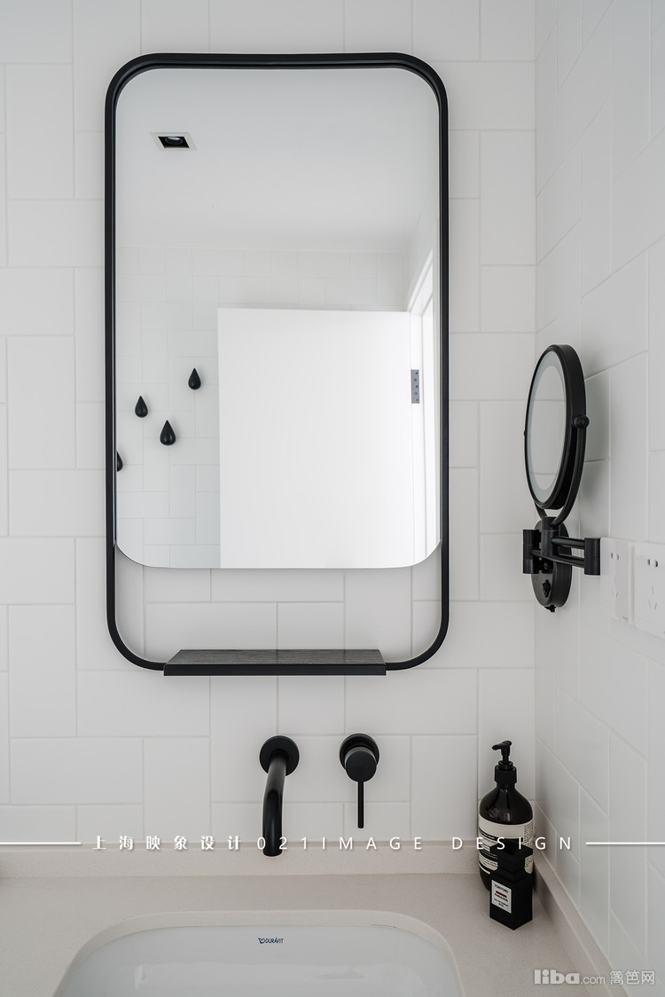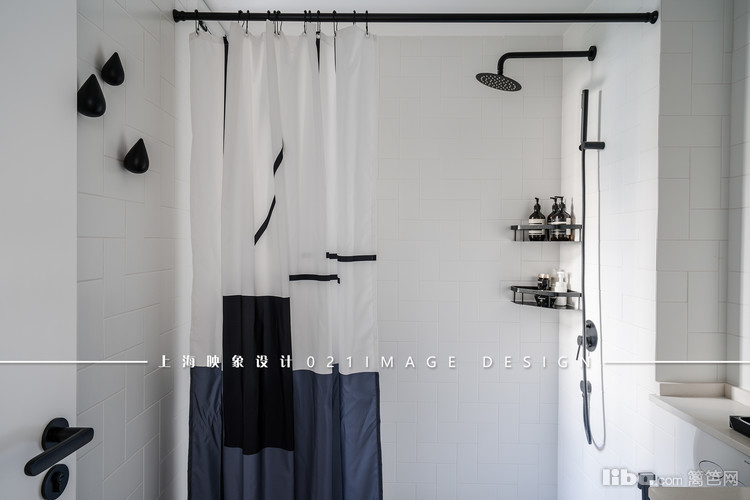 卫生间的特别之处是用白色和黑色来装扮的,大面积的白色墙面点缀上一些黑色的五金用品,简单、随意也是极具美感的。