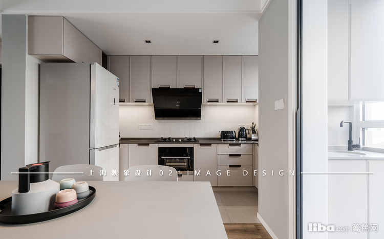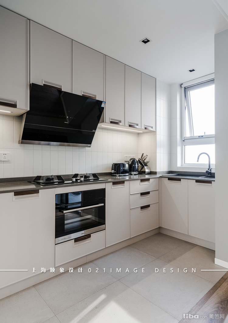 看似很普通的地方,细细一品你会发现,橱柜的把手是木色的,简单又特别。再看灶具和脱排的地方,又是浓重的黑色,瞬时就有了亮点。