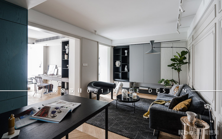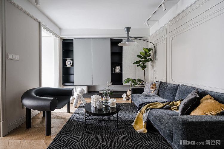 依靠电视背景墙后的整柜,让储物量MAX。隐藏式的幕布+投影仪,让看电视的时光变成了影院级享受。