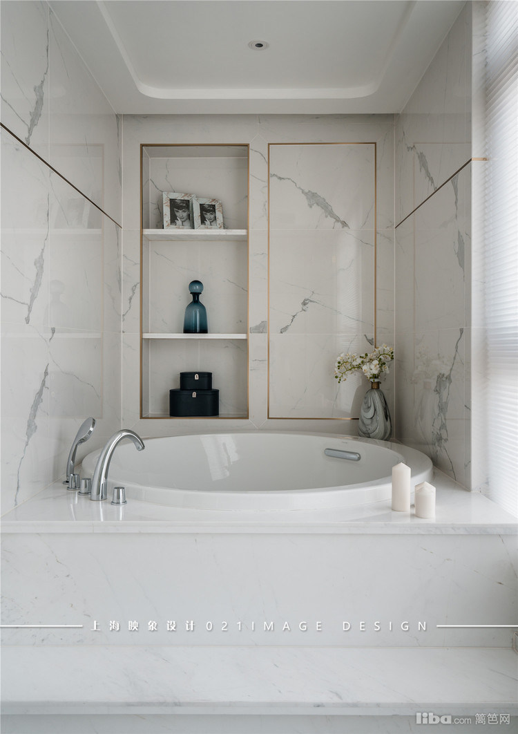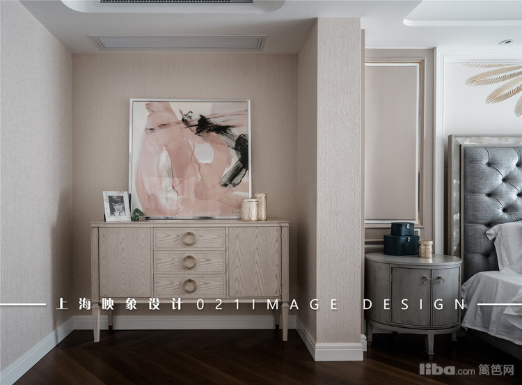 皮雕的背景墙更显高级,用淡淡的脏粉色烘托房间的温馨氛围。高背的床板让斜靠在床上的感觉更舒适。