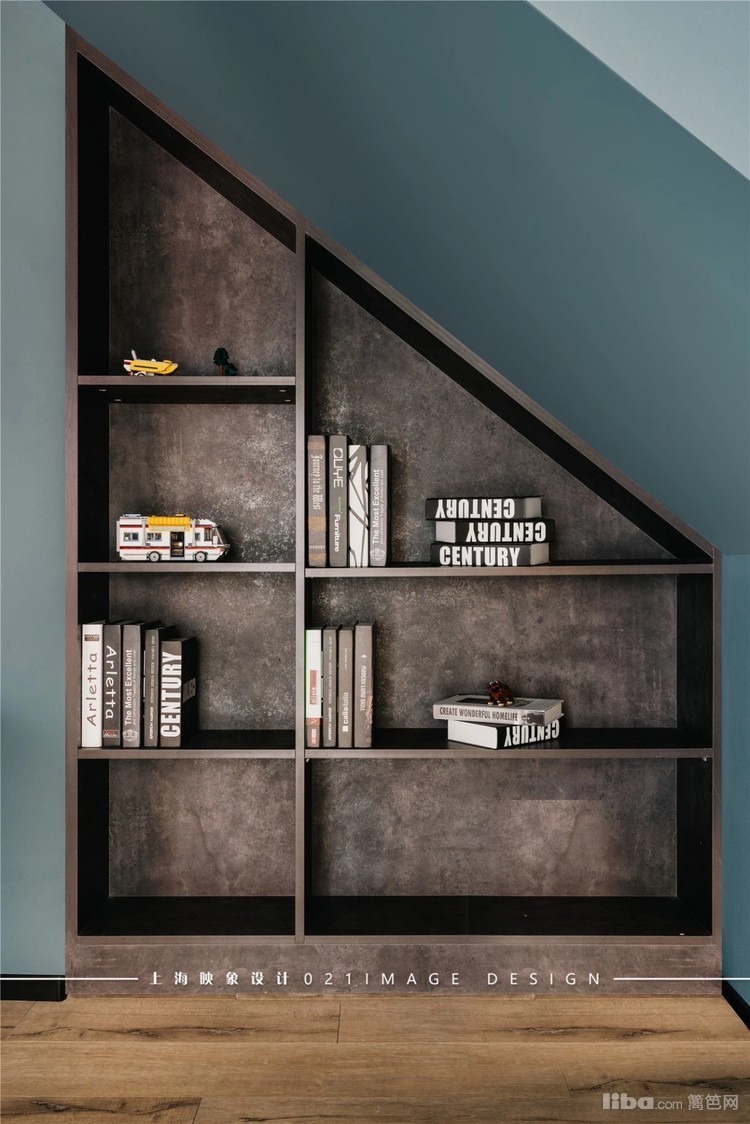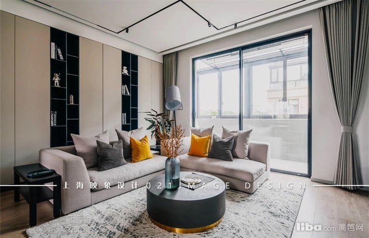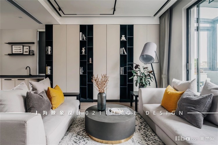 客厅很宽敞,设计师利用了部分的区域做了一正面的书架,可以存放很多东西