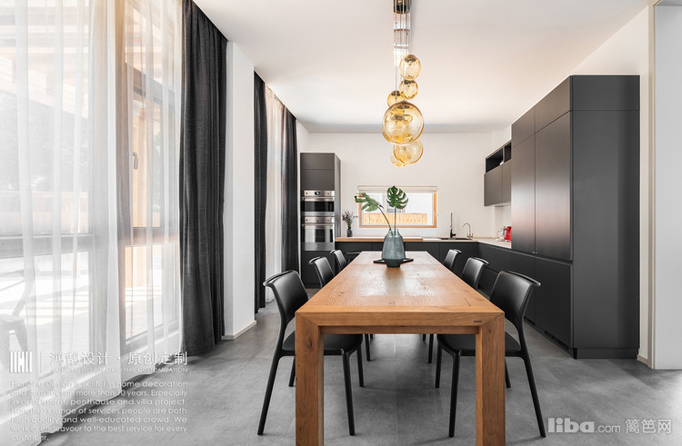 考虑到屋主的生活习惯,餐厅和开放式厨房都特意选择了柔和简约的色彩搭配。